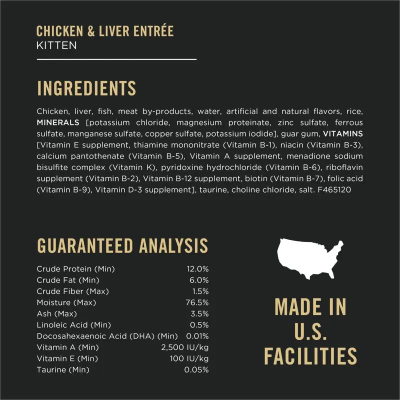 • Kitten food wet variety pack entrees made with real poultry or fish for a taste kittens love in highly digestible formulas for optimal nutrient delivery