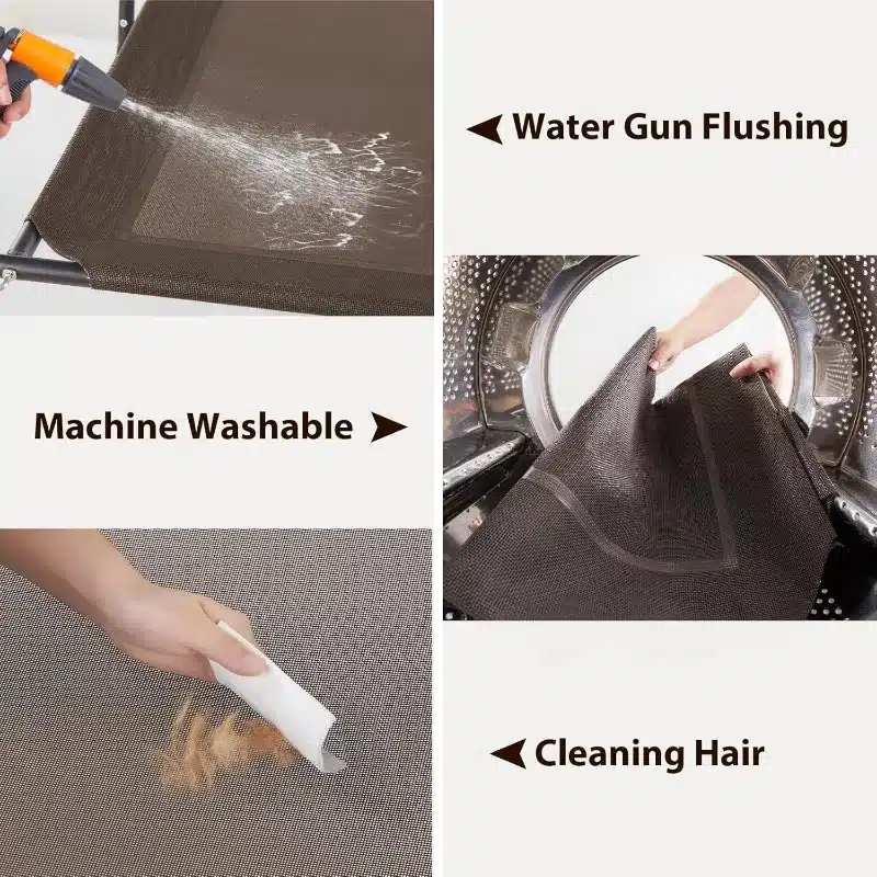 • 【DOG BED EASY CARE】: This cooling Elevated dog bed is super easy to clean. pet hair,vomit,and dust can be easily wiped with Wash the mesh with tap water,a hose, or a damp towel.When cleaning the entire mesh,Please use mild soap or natural cleaning agents for complete cleaning.which is convenient and quick.No worry about pet odors, dirt,or excessive hair anymore,(Remember to separate the shampoo for the U-shaped pillow )