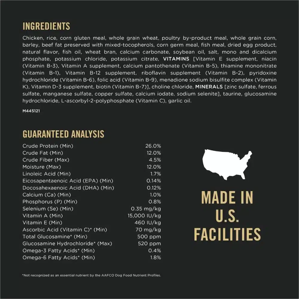 Purina Pro Plan Large Breed Dry Dog Food for Adult Dogs Chicken Rice, Support your large breed dog’s specific nutritional needs with Purina Pro Plan Brand Dog Food Large Breed Chicken and Rice Formula adult dry dog food. Real chicken is the first ingredient of this large breed dog food to help provide protein, an essential nutritional building block within your dog’s body. This highly digestible adult dog food formula promotes nutrient bioavailability and is formulated to support optimal nutrient absorption. Omega-6 fatty acids help promote your dog’s healthy skin and coat to keep him looking his very best. With 26 percent protein and 12 percent fat in every serving, this large dog food formula helps maintain his ideal body condition.