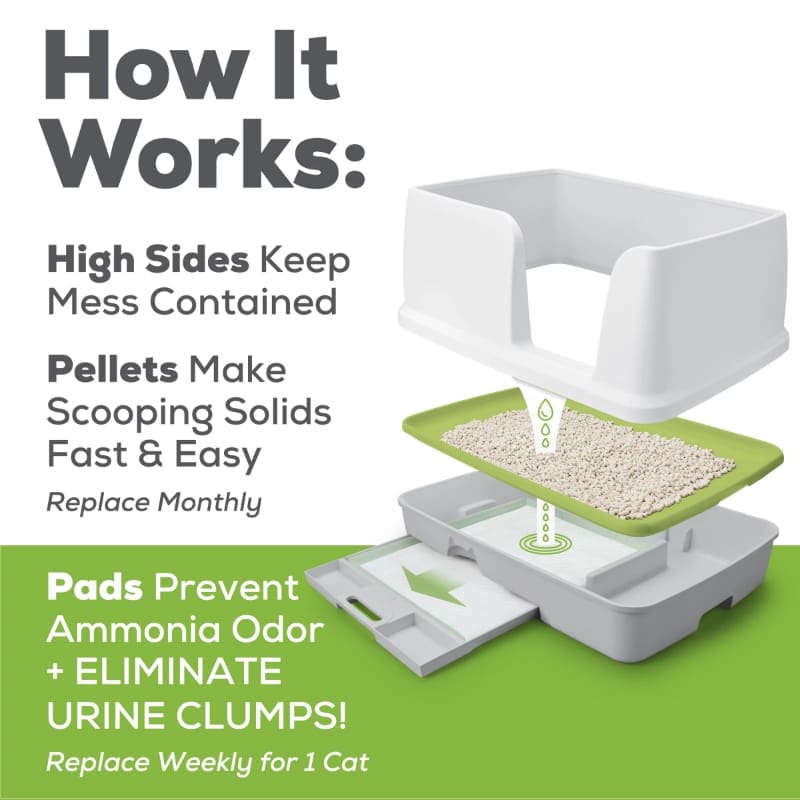 • High sides on the Breeze XL litter box help prevent tracking and keep mess contained