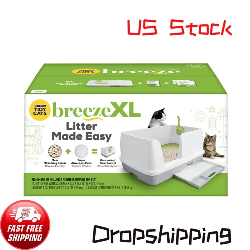 Purina Tidy Cats Breeze Cate Litter Box System Starter Kit Xl. Discover the ease of Breeze with the Purina Tidy Cats Breeze XL All-in-One Litter System. The super absorbent Breeze cat box pads lock away urine, so there's no more scooping urine clumps, and solids stay on top for easy removal. This big litter box system provides a roomy experience that your big cat is sure to love. The Breeze XL Litter System makes your life easier too with high sides that help contain mess and litter pellets that minimize tracking. Neat floors. Neat feet. Satisfaction Guaranteed. Our super absorbent Breeze litter pads help keep your home smelling fresh by controlling ammonia odor and the XL litter box dry for your cat's comfort.